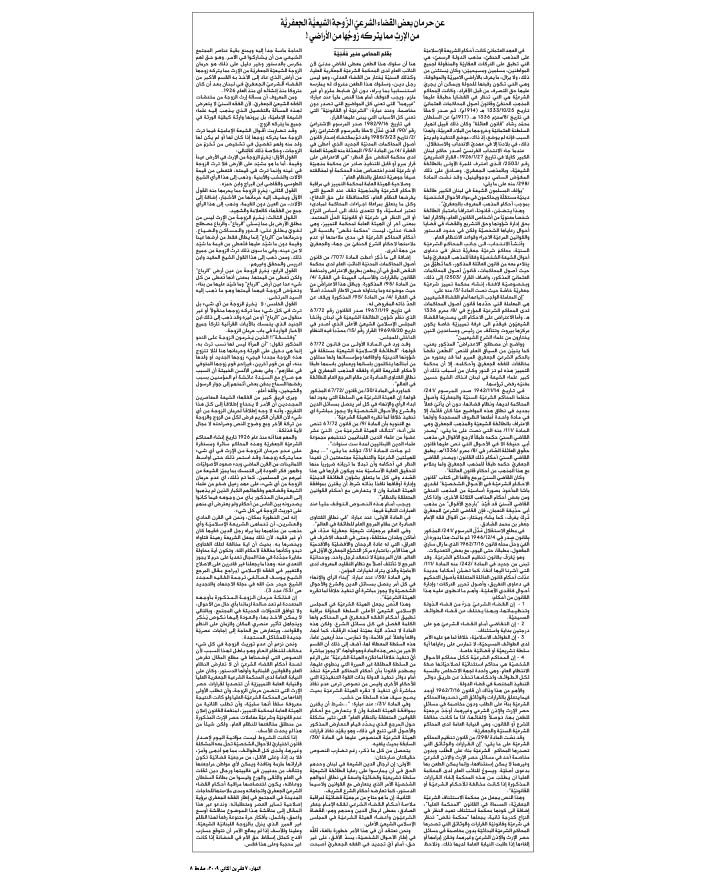 عن حرمان بعض القضاء الشرعيّ الزوّجة الشيعيّة الجعفريّة من الإرث مما يتركه زوجها من الأراضي!