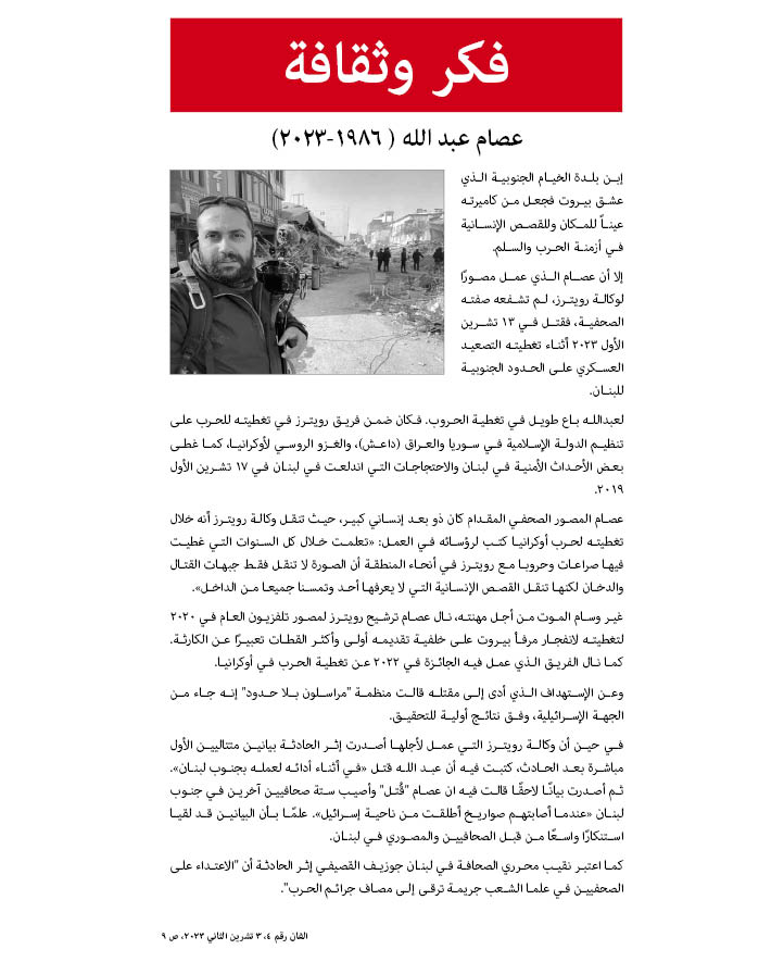 عصام عبد الله ( ١٩٨٦-٢٠٢٣) شهيد الصّحافة