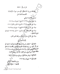 قانون يقتضي بوضع المراقبة على الصحف ووكالات الأخبار وجميع المطبوعات فيما يختص بأنباء فلسطين والجيش