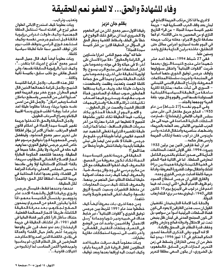 هل يعقل أن يكون الأمر كذلك وألا يبادر اللبنانيون، أقله دفاعاً عن النفس، إلى مساءلة العفو وإلى استطلاع مذاهب أخرى من القول والعمل؟ لعلنا لا نغالي إن زعمنا أن اللبنانيين، اليوم، على هذا المحك، وإن زعمنا أن ما شهدناه من ذهاب بعض أعيانهم، خلال السنوات الماضية، ولو تحت الضرورة، إلى «الاعتراف» العلني، ولو الناقص الحذر المتردد، بما ارتكبت أيديهم وأيدي الجماعات التي (كانوا) يتولون إمرتها، إنما يشير، ولو بخجل، إلى «مزاج» لبناني من السأم (السياسي) لم يعد يكفي معه أن يعفو الله عما مضى... ــ «مزاج» وحدهم اللبنانيون يملكون أن يترجموه إلى «فعل سياسي».