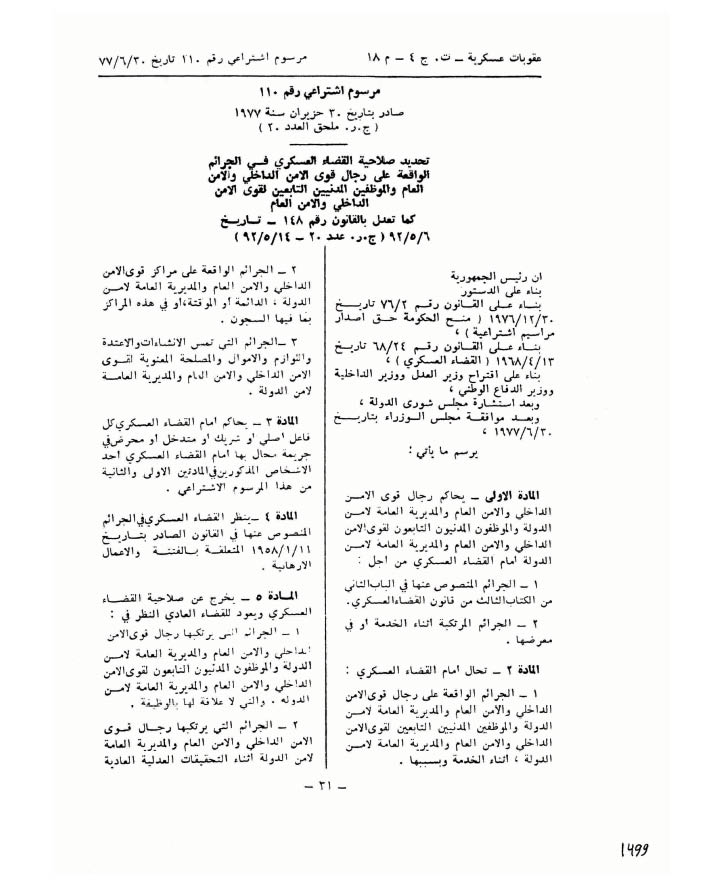 مرسوم اشتراعي رقم ١١٠: تحديد صلاحية القضاء العسكري