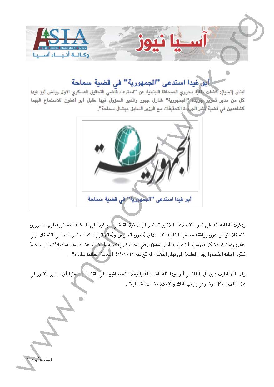 اللواء، ٢٢ أيار ٢٠١٢
