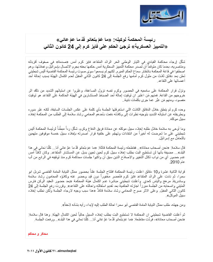 يوميات المحكمة العسكرية