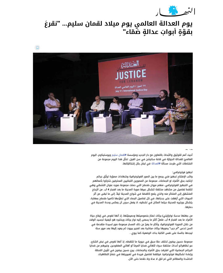 يوم العدالة العالمي يوم ميلاد لقمان سليم... «نقرعَ بقوّةٍ أبوابَ عدالةٍ صَمّاء»