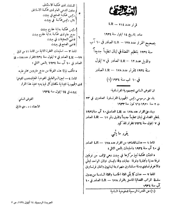 الجريدة الرسمية، ١٢ أيلول ١٩٣٤