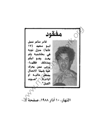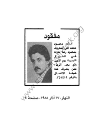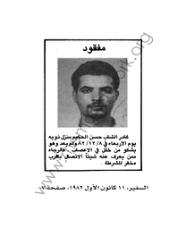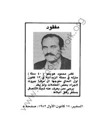 وما كان يسري على «الوضع» في عمومه كان يسري أيضاً على تفاصيله، ومنها «الفقد» نتيجة «الخطف». من ثم، على سبيل المثال، «النفحة البشرية» (الساذجة؟) التي تطالعنا في بعض الإعلانات التي كان ينشرها أهالي «المفقودين»: فـ «سعد الدين حسين الحجار يعمل سائقاً. متزوج منذ عام ويسكن في طرابلس. صباح ٨ تموز (١٩٧٥) تناول فطوره مع والدته في مسكنها في الطريق الجديدة ثم اتجه الى بيته ولم يعد. يرجى ممن يعرف عنه شيئا الاتصال بمقهى أبو حتي. التلفون... »، أما ساركون يونان (٢٢ عاماً) فـ«غادر منزله منذ أيام وتوجه إلى صبرا لتفقد سيارته المعطلة. يرجى ممن يعرف عنه شيئاً الاتصال بالرقم... ». وهي النفحة إياها التي تطالعنا في نداءات أهليهم إلى خاطفيهم المحتملين: فـ سلوى شامية لا تملك سوى أن تكرر رجاءها «لمن لديهم ولدِي عادل شامية ان يعيدوه إلي وأرجو الله ألا تلتهب قلوب أمهاتهم كما اشتعل قلبي كأم. باسم أعياد السلام والمحبة والتضحية أتوسل اليكم إعادة ولدي عادل». أما فرسان زيدان دياب والد جليل دياب «الذي فقد في ٢ حزيران الماضي قرب مفرزة سير بعبدا في بولفار كميل شمعون» فـ «وجه نداء لإعادة ولده المخطوف قائلاً إنه من زمان لم يتسنّ له رؤيته، وهو يهيب بالذين يعرفون عن مصير نجله شيئاً إعادته والاتصال به في مخيم ضبيه حيث يقيم منذ نزوحه من فلسطين». وهي هي في رسائل الشكر (المفتوحة) التي كان يوجهها بعض المُفرج عنهم إلى خاطفيهم أو المتدخلين للإفراج عنهم: «على وجه المسلحين الذين خطفوني قرأت عمق المأساة الصامتة التي يعيشونها، ورأيت في بريق عيونهم صدقاً وحزناً. أرادوا بخطفي إنقاذ اخوة لهم مخطوفين، وشهدت منهم معاملة الأخ لأخيه وإكرام الصديق لصديقه. فإلى هؤلاء وإلى قيادة أمن الثورة أتوجه بشكري، متمنياً لو يتفهم كل الفرقاء حقيقة صراعهم، عندئذ ستنتصر المحبة على الحقد ويعود السلام إلى ربوعنا المحترقة».